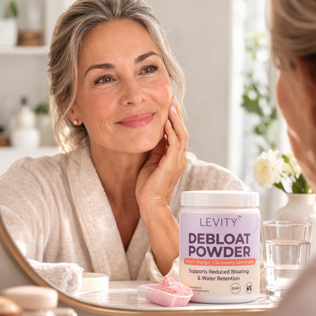 When the digestive system is supported properly, many women experience less stomach bloating, reduced abdominal pressure, and a lighter overall feeling. This internal relief can often help reduce the appearance of puffiness throughout the body — including the face. With daily use, LEVITY™ Debloat Powder supports digestion and helps the body feel less bloated overall.